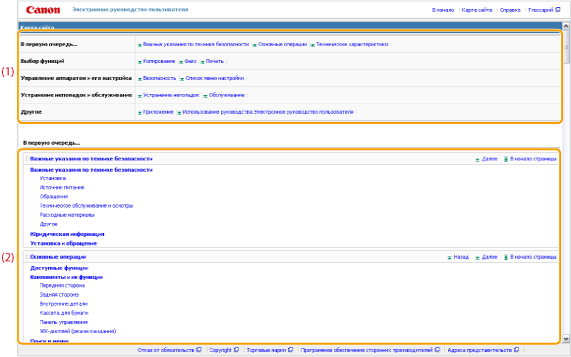 Отображение категорий разделов документа Электронное руководство пользователя. Щелкните категорию для просмотра списка разделов.
