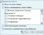 ![]() Укажите условия поиска, например часть главы, в которой необходимо выполнить поиск, зависимость от регистра или различия однобайтовых и двухбайтовых символов.
