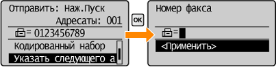 (2) Укажите следующего адресата с помощью цифровых клавиш, а затем нажмите [OK].