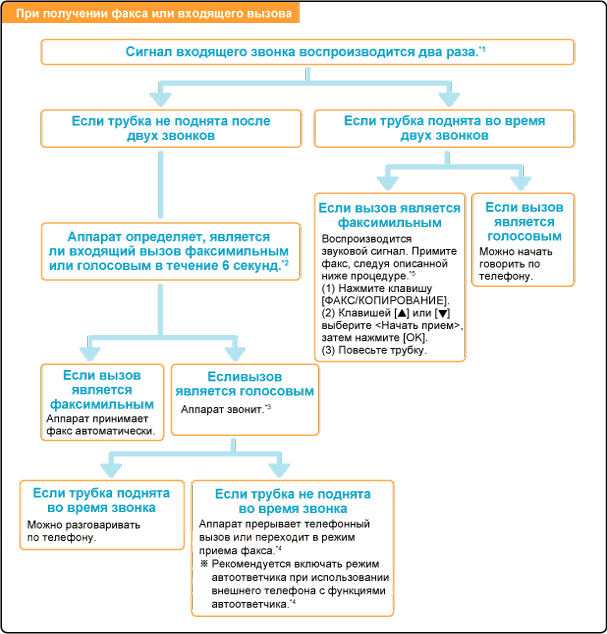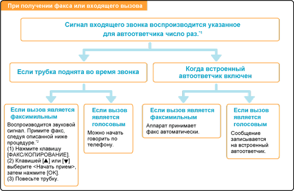Если для параметра « Переключение на автоматический прием» установлено значение <Вкл.>, аппарат автоматически начинает принимать факс после нескольких звонков.
