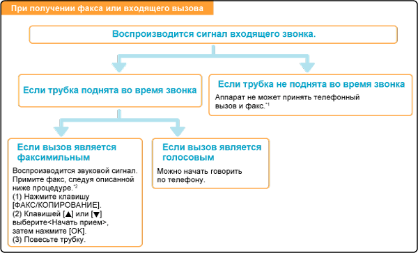 В зависимости от подключенного телефона прием факса обычным способом может быть невозможен.