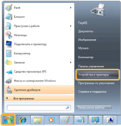 ] (Пуск) -> [Devices and Printers] (Устройства и принтеры).