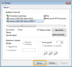 ] (Устройства) -> используемое устройство -> [Print] (Печать). При выполнении печати таким образом можно задать лишь некоторые из функций печати. |