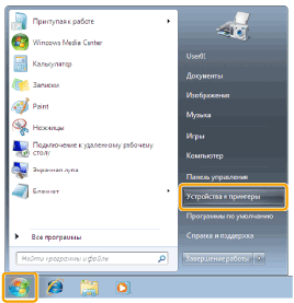 ] (Пуск) -> [Devices and Printers] (Устройства и принтеры).