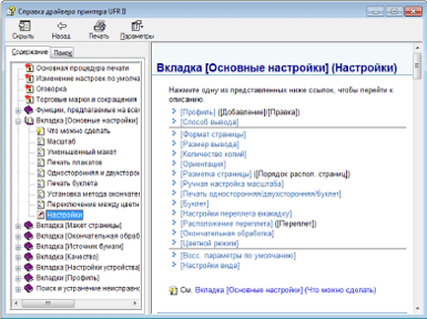 Интерактивная справка содержит дополнительные сведения по каждому параметру печати. Если не удается найти необходимую информацию в руководствe Электронное руководство пользователя, см. интерактивную справку.