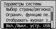 ] выделите пункт <Вкл./Выкл. устр. USB>, затем нажмите [OK].