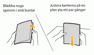 Justera dokumentledarna efter papperets bredd utan ledigt utrymme.Om dokumentledarna sitter för löst eller för hårt kan det orsaka felmatningar eller pappersstopp.