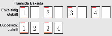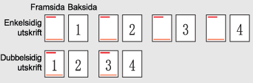 Kom ihåg att placera pappersbunten på rätt sätt när förtryckt papper används eftersom sidan som placeras uppåt varierar mellan enkelsidig och dubbelsidig utskrift.