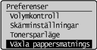 ] för att markera <Växla pappersmatningsmetod> och tryck sedan på [OK].