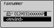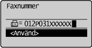 Ange landsnumret, riktnumret och mottagarens fax-/telefonnummer med sifferknapparna.