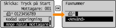 När du anger mottagare med sifferknapparna (Ange nästa mottagare (ny)): |