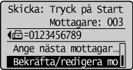 Så här anger du mottagare med sifferknapparna:Skriv numren och tryck på [OK].
