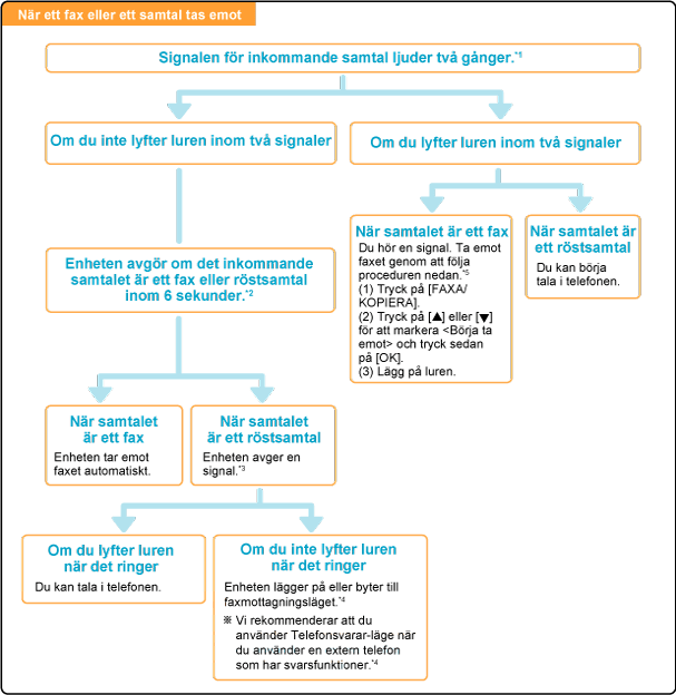 Se de flödesscheman som finns nedan för att välja det mottagningsläge du vill använda.