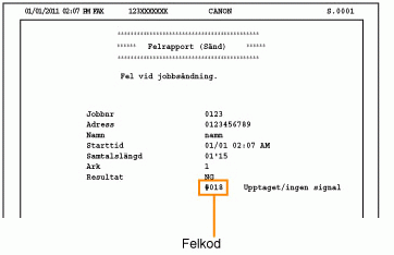 Upprepa sändningsproceduren från början. Du kan också be mottagaren att kontrollera sin faxenhet. Om du ringer ett utlandssamtal lägger du till en paus i faxnumret.