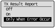 ] виділіть <TX Result Report>, потім натисніть кнопку [OK].
