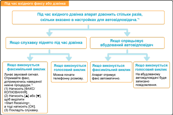 Наведені нижче схеми допоможуть вам вибрати потрібний режим отримання факсів.
