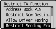 ] виділіть <Restrict TX Function>, потім натисніть кнопку [OK].
