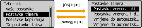 ] da biste odabrali stavku, a zatim prijeđite na sljedeći zaslon.