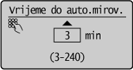 Postavke automatskog prelaska u stanje mirovanja:Vrijeme do automatskog mirovanja možete postaviti u intervalima od jedne minute od <3> do <240> minuta. Zadana je postavka <3> minute.