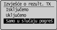 ] da biste označili <Izvješće o rezultatu TX-a>, a zatim pritisnite [OK].