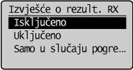 ] da biste označili <Izvješće o rezultatu RX-a>, a zatim pritisnite [OK].