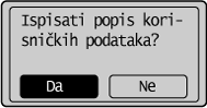Odaberite ispis popisa korisničkih podataka.