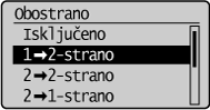 ] da biste označili <1->2-strano>, a zatim pritisnite [OK].