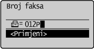 Budući da se signali prenose na velike udaljenosti putem složenog kanala, vaš poziv možda neće biti uspostavljen ako ne dodate pauzu iza pozivnog broja države ili ispred broja faksa. Ako dodate pauzu, proći će dovoljno vremena prije no što uređaj počne ponovno birati broj.