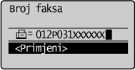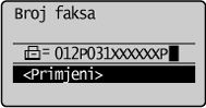 Pomoću numeričkih tipki unesite pozivni broj države, područni pozivni broj i broj faksa ili telefona.