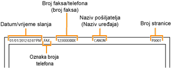 Naziv pošiljatelja na stranici se prikazuje na sljedećem mjestu:Podaci se ispisuju pri vrhu svake stranice koju šaljete.