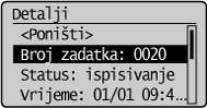 ] (Stop) da biste otkazali posao kada uređaj sadrži samo jedan posao. |