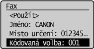 Pokud jsou u kódu kódované volby již uložena místa určení, stiskněte tlačítko [