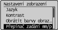 ] zvýrazněte možnost <Přepínač zadání mm/palce> a stiskněte tlačítko [OK].