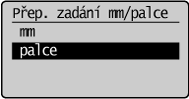 ] zvýrazněte položku <mm> nebo <palce> a stiskněte tlačítko [OK].