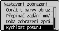 Nastavte rychlost procházení nabídky, pokud na obrazovce nelze zobrazit všechny položky nabídky.