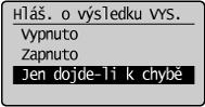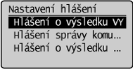 ] zvýrazněte možnost <Hlášení o výsledku VYS.> a stiskněte tlačítko [OK].
