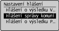 ] zvýrazněte možnost <Nastavení hlášení> a stiskněte tlačítko [OK].