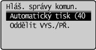 ] nebo [ ] zvýrazněte možnost <Automatický tisk (40 přenosů)> a stiskněte tlačítko [OK]. |
