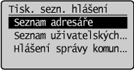 ] zvýrazněte možnost <Tisk. sezn. hlášení> a stiskněte tlačítko [OK].