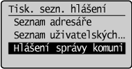 ] zvýrazněte možnost <Tisk. sezn. hlášení> a stiskněte tlačítko [OK].