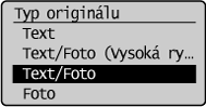 ] zvýrazněte možnost <Typ originálu> a stiskněte tlačítko [OK].