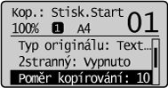 Poměr kopírování je možné zadat také pomocí číselných tlačítek.