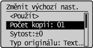 Výchozí hodnoty kopírování se použijí po zapnutí přístroje, stisknutí tlačítka [