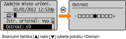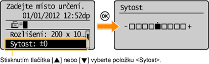 Chcete-li zřetelně skenovat text nebo čáry, upravte toto nastavení na odpovídající úroveň na škále <+>. Nejlepší je pro skenování modrotisků a textů psaných slabou tužkou.
