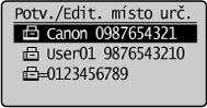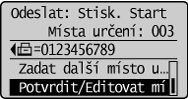 Zadání míst určení pomocí číselných tlačítek:Zadejte čísla a stiskněte tlačítko [OK].
