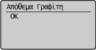 Το μήνυμα <ΓραφίτηςΣχεδόνΚενός.> εμφανίζεται στην οθόνη Για λεπτομέρειες σχετικά με τη λύση, ανατρέξτε στα παρακάτω. "Μηνύματα οθόνης" |