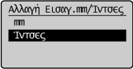 ] για να επισημάνετε την επιλογή <mm> ή <Ίντσες> και, στη συνέχεια, πατήστε το πλήκτρο [OK].