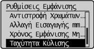 Ρυθμίστε την ταχύτητα κύλισης του μενού, εάν δεν είναι δυνατή η προβολή στην οθόνη όλων των στοιχείων του μενού.