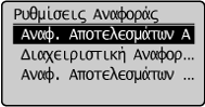 ] για να επισημάνετε το στοιχείο <Αναφορά Αποτελέσματος ΑΠ> και, στη συνέχεια, πατήστε το πλήκτρο [OK].