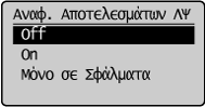 ] ή [ ] για να επισημάνετε το στοιχείο <Μόνο σε Σφάλματα> και, στη συνέχεια, πατήστε το πλήκτρο [OK]. |